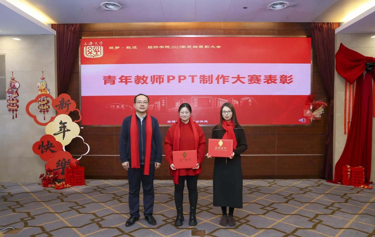 此后,经济学院党委书记尹应凯,经济学院党委副书记、副院长冯玉鑫还对在青年教师PPT制作大赛中斩获佳绩的教师们进行了表彰。