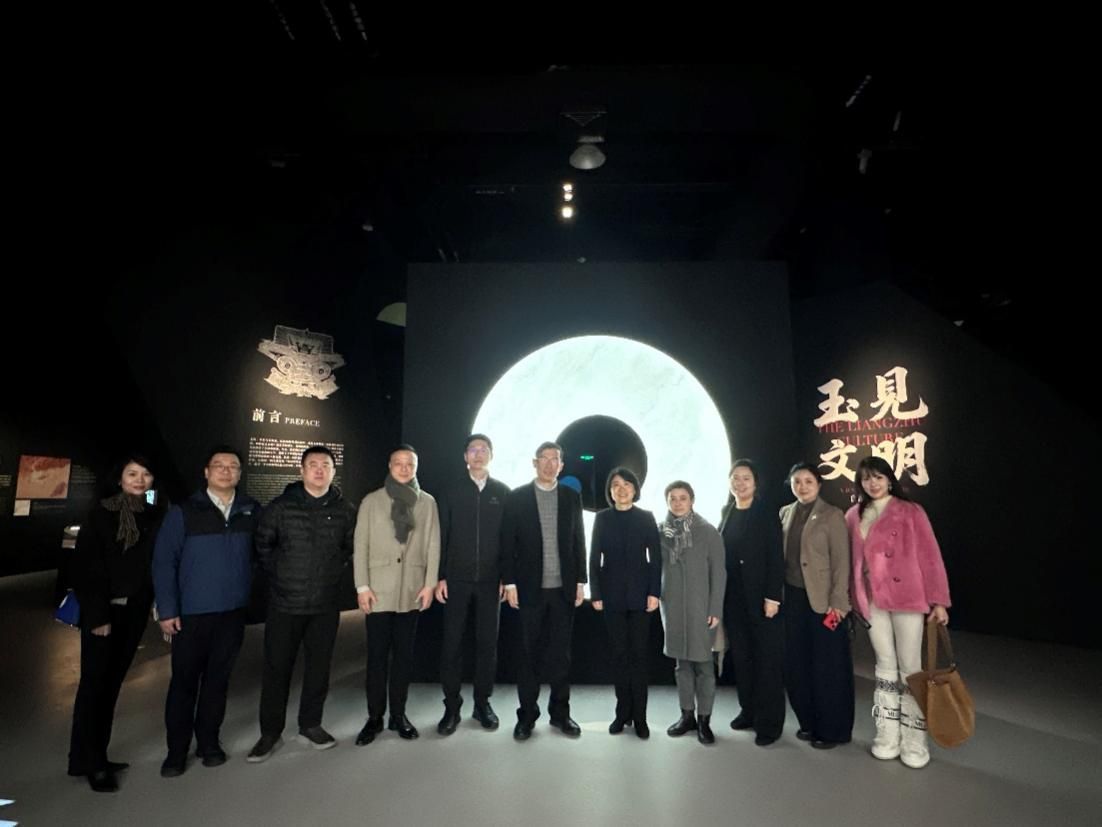上航总经理张渊率管理团队一行首先参观了上海大学博物馆的“海上风华:名媛旗袍展”,展览通过精致旗袍与历史影像,展现了海派文化中时尚与人文的交融,为上航客舱服务设计提供了灵感来源。随后,嘉宾移步至“玉见文明:良渚文化特展”,在博物馆馆员牛梦沉、苗荟萃的讲解中,感受中华文明的深厚底蕴,进一步启发文化跨界创新的思考。