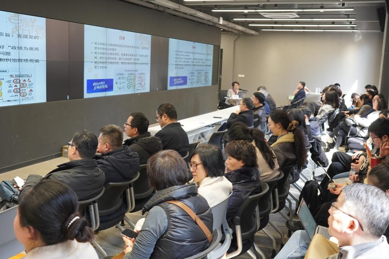 会前邀请了上海市学习贯彻党的二十大精神专家宣讲团成员陶倩教授主讲了《树立和践行正确政绩观,开创中国式现代化新局面》专题报告。