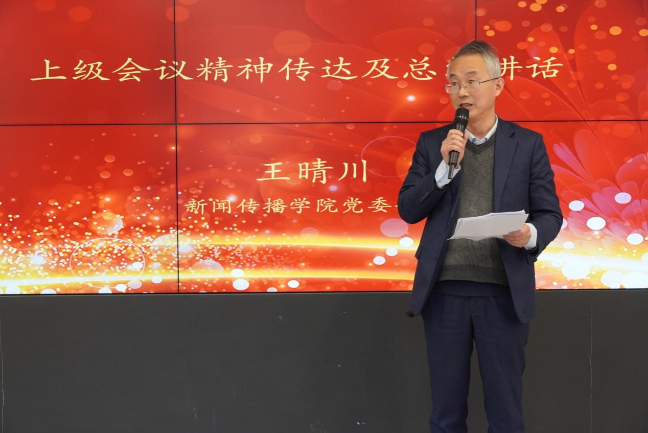 近日,上海大学新闻传播学院2026年第二次全体教师大会在上海智能媒体传播创新实验中心104室举行。学院党政领导班子成员及全体教师参加会议,会议由学院党委副书记、副院长王智君主持。