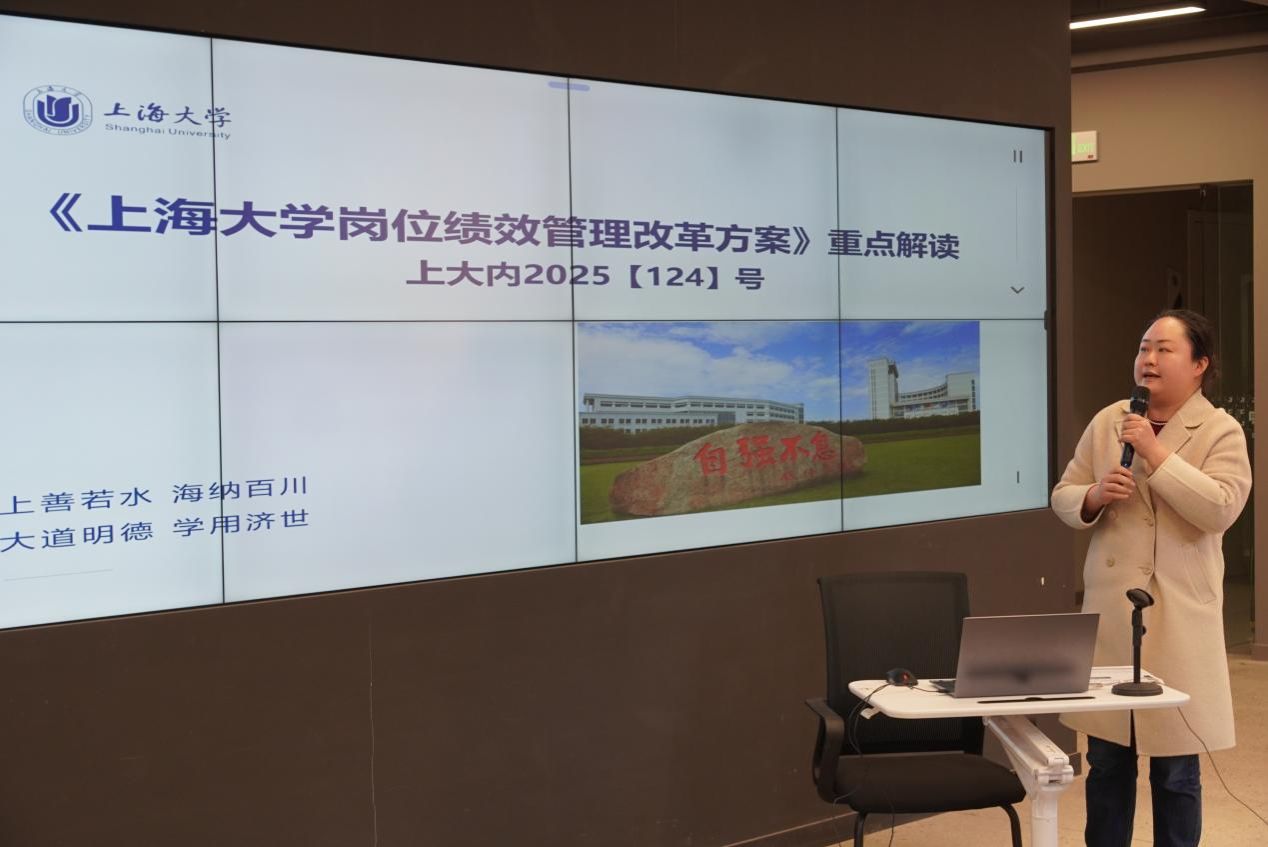 学院人事干事孙雯老师解读了《上海大学岗位绩效管理改革方案》,重点介绍了本科课程教学核算方法调整、科研成果认定规则等内容,并提醒教师们每年六月中旬在绩效系统中及时填报成果。