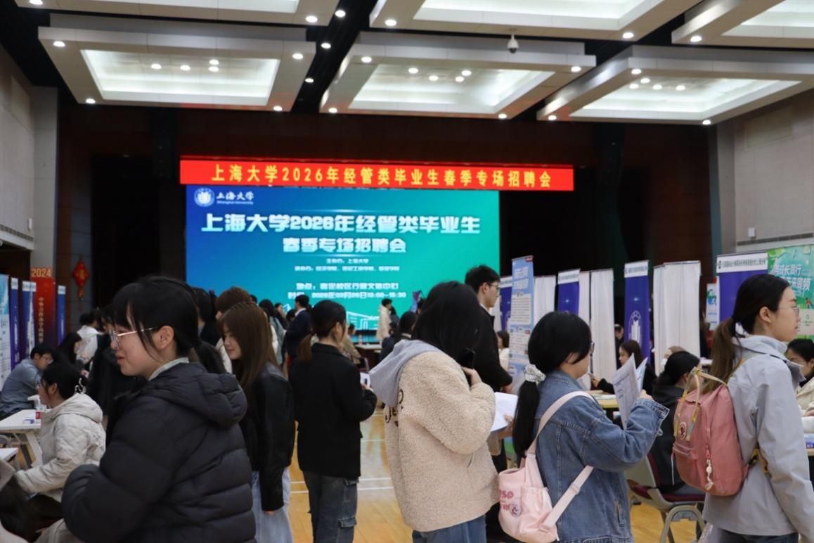 3月26日下午,上海大学2026届经管类毕业生春季专场招聘会在嘉定校区行健文体中心如期举办。本次招聘会由上海大学主办,经济学院承办,悉尼工商学院、管理学院共同协办,旨在深入落实国家关于促进高校毕业生高质量充分就业的决策部署,为经管学子搭建精准、高效的就业服务平台。招聘会积极响应高质量就业政策号召,通过整合优质企业资源、精准对接行业需求,护航经管学子走稳职业生涯第一步。