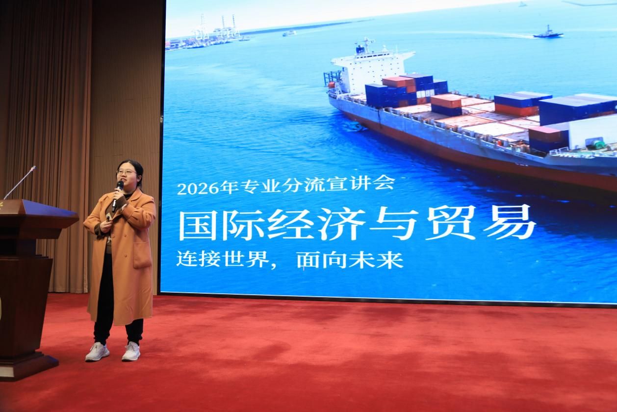 接着,经济学、国际经济与贸易、金融学三个专业的青年教师代表依次进行专业介绍。郁杨成聚焦经济学专业的整体发展前景,围绕当前经济社会发展趋势与行业人才需求,重点介绍了经济学专业的核心课程体系和多维能力培养模式,分析了经济学专业的广阔发展空间,解读了“经济学给你理解世界的框架,也给你改变世界的底气”。