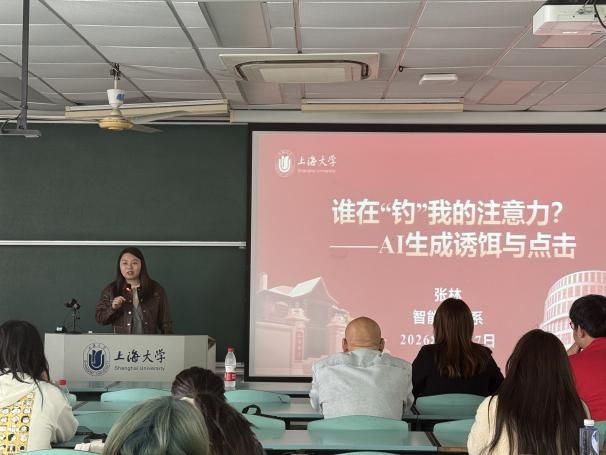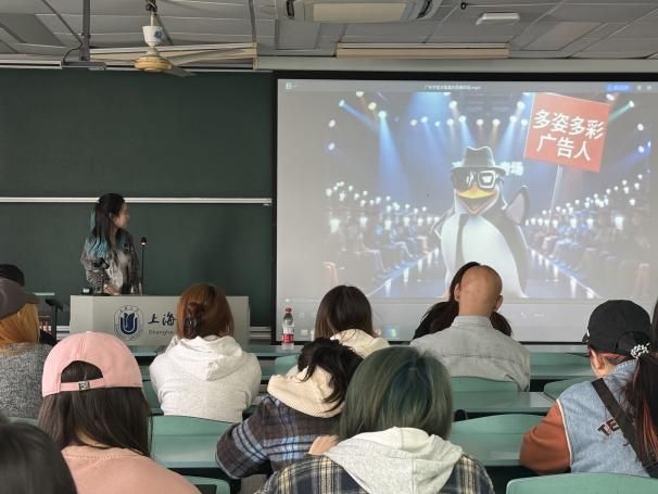 从“算法旁观者”到“治理参与者”,从“信息接收者”到“真相传递者”——青年教师们抛开传统叙事,以核心论点引发强烈共鸣。张林老师聚焦“算法治理”,号召学生从“被钓的鱼”到“清朗的守护者”。刘峰老师通过政务传播、企业宣传、个人IP打造等案例,展示了智能视听在广泛领域的应用价值。陈鑫盛老师则探讨“社会可见性”,指出新闻学在数字时代具有重构感知、连接真实与认知的独特使命,是让复杂社会现实被看见的桥梁。段秋婷老师以“为什么热AI广告”为题,分享AI时代的广告育人方向;张莉莉老师则通过学生的项目案例生动介绍专业的行业优势与培养特色。青年教师的分享,不仅为在场学子清晰呈现专业发展路径,更生动展现了新传学子的创意活力,为在场同学注入了前行的力量。