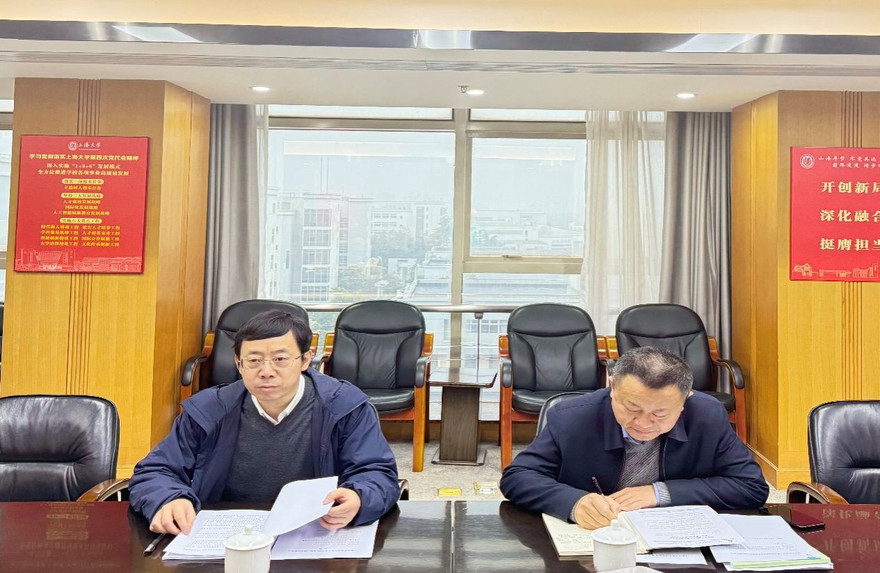 近日,上海大学统战研究基地2026年第一次工作推进会在宝山校区召开。校党委副书记、统战研究基地主任段勇,校党委常委、统战部部长曹为民,上海大学统战研究基地执行主任兼统战史中心负责人廖大伟、副主任兼统战史中心负责人高立伟、副主任兼新阶层中心负责人张海东、副主任兼铸牢中华民族共同体意识研究中心负责人潘守永,基地研究人员庞保庆、林威杰等出席此次会议,共同谋划基地2026年重点工作、凝聚发展合力。
