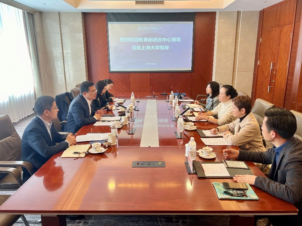 4月8日,教育部中外语言交流合作中心(以下简称“语合中心”)副主任刘剑青一行前来我校进行调研交流。上海大学副校长于雪梅出席会谈,国际部相关负责人陪同参与调研活动。