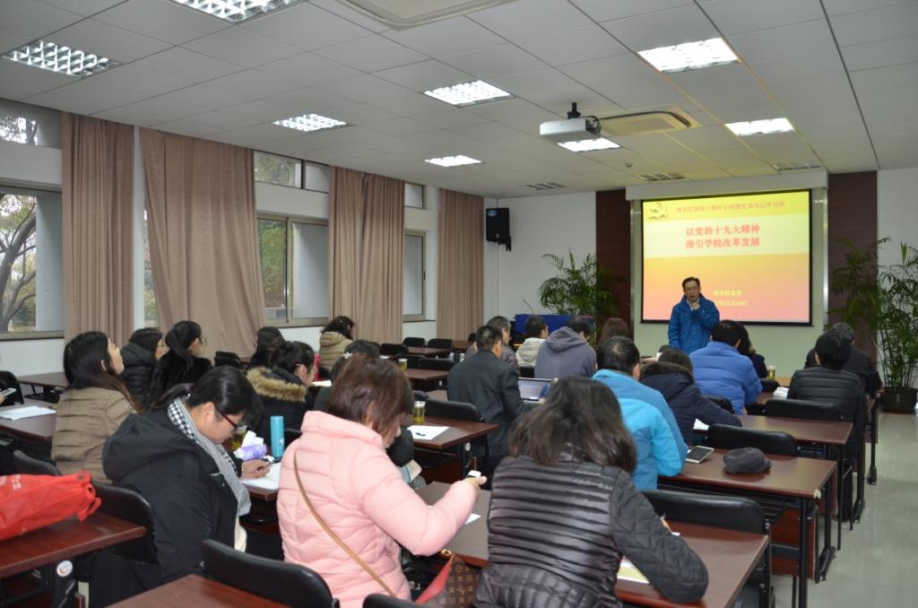 12月15日,理学院第四十期中心组暨支部书记学习班顺利举行。本次学习班的主题为“以党的十九大精神指引学院改革发展”。上海高校思政课名师工作室主持人、上海大学教务处副处长顾晓英,上海大学特邀党建组织员施恩望应邀为学习班作报告。理学院党委中心组成员、全体支部书记以及工青妇负责人、研究生专职委员、学工辅导员、院系挂职教师、院部行政人员四十余人参加了学习研讨。会议由学院党委副书记王东媛主持。