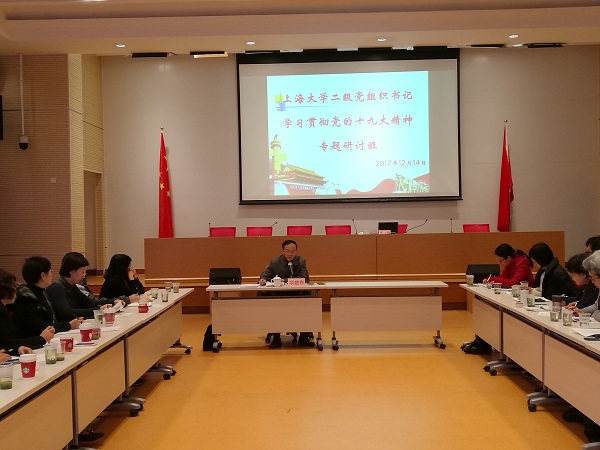 为深入学习贯彻党的十九大精神,切实把思想和行动统一到党的十九大精神上来,12月14日,上海大学二级党组织书记学习贯彻党的十九大精神专题研修班举行。各学院(系统)党委、直属党总支书记以及党务部门领导参加本次学习。