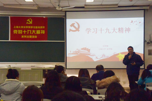 12月10日,是上海大学2017-2018学年冬季学期的首日教育,当天,全校开展了主题为“学十九大精神·享挑战杯精神·谱青春华章”的集中教育活动。各学院结合党的十九大报告,习近平新时代中国特色社会主义思想,新时代和新征程等内容开展了形式多样的学习宣传教育活动,做到了班班讲、全覆盖,让当代大学生能够原原本本学习十九大报告,学懂学深、学以致用。