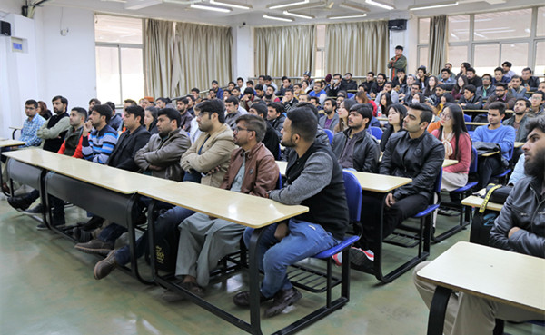 11月24日,国际交流学院“知华讲堂”第25期在上海大学宝山校区DJ208举办。本次知华讲堂由上海大学国际交流学院院长、孔子学院办公室主任姚喜明教授主讲,主题为“跨越语言与文化——从丝绸之路到中巴经济走廊”。巴基斯坦汉语班与各国学历留学生两百多人聆听了讲座。