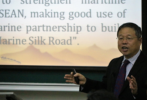 讲座伊始,姚喜明教授介绍了自己7月份出访巴基斯坦高等教育委员会的成果,并提出两个问题:你为什么来到上海大学学习,文化对我们意味着什么。接着,通过与留学生的讨论,引出本次讲座的主题,介绍了中国提出“一带一路”战略的时间、背景和缘由,然后沿着历史的脉络,详细讲解了中国古代丝绸之路的发展,以及为此作出巨大贡献的张骞、法显、郑和等人。丝绸之路是东西方经济、政治、文化交流的主要道路,延续上千年,对东西方文明产生了深远影响,是人类文明史上的友谊之路、发展之路和探索之路。