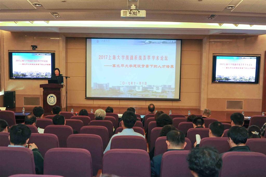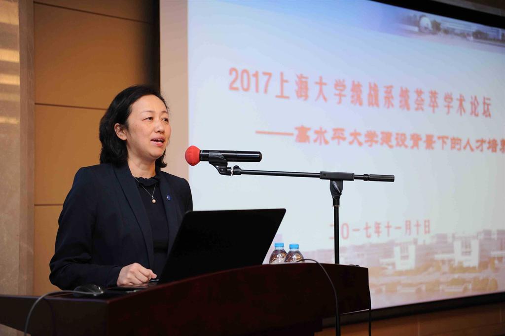 11月10日下午,2017上海大学统战系统荟萃学术论坛在宝山校区乐乎新楼学海厅举行。本次论坛由校党委统战部主办,民建上海大学委员会和民进上海大学委员会共同承办,论坛主题为“高水平大学建设背景下的人才培养”。校党委副书记、副校长龚思怡出席论坛并讲话,上海大学党委统一战线工作领导小组成员,相关职能部门负责人,各二级单位统战委员,各民主党派、统战团体代表共100余人参加了论坛。论坛开幕式由校党委统战部部长曹为民主持。