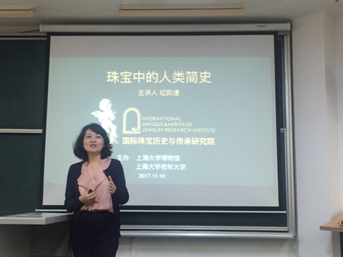 11月10日下午,由上海大学博物馆、上海大学老年大学联合主办的“珠宝中的人类简史”讲座在我校FJ206举行,邀请国际珠宝历史与传承研究院副院长纪凯倢主讲。