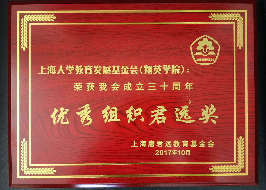 上海大学教育发展基金会(翔英学院)荣获“优秀组织君远奖”,校党委副书记、副校长、基金会理事长徐旭上台接受唐英年先生颁奖祝贺。上海大学翔英学院教师方针获“杰出获奖教师君远奖”,上海大学翔英学院学生王逸凡获“杰出获奖学生君远奖”。
