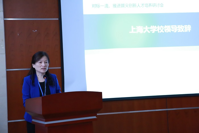 上午主题报告会由上海大学党委常委、副校长聂清主持并致欢迎辞,她简要介绍了上海大学的基本情况和办学优势,交流了我校拔尖创新人才培养探索及本科教育教学改革情况。