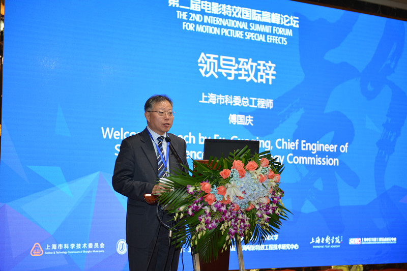 论坛开幕式由上海电影学院副院长、上海电影特效工程技术研究中心副主任丁友东主持。首先,上海大学校发展规划处处长王廷云代表徐旭副书记、副校长向来宾致欢迎词;上海市科委傅国庆总工程师以及上海市广播电视节目制作业行业协会秘书长于志庆分别致辞;上海电影学院执行院长、上海电影特效技术研究中心主任何小青发言。上海电影特效技术研究中心于去年10月27日正式挂牌成立。在过去的一年中,上海电影特效工程技术研究中心在上海市科委和上海大学的领导下,在上影集团、SMG等共建单位的精诚合作和共同努力下,严格按照建设任务,在电影特效的技术研究、人才培养、标准制定、产业化推广以及相关服务等方面已经取得突破,对进一步完善电影制作产业链,繁荣上海乃至全国电影产业,促进上海创新驱动发展,发挥重要的作用。