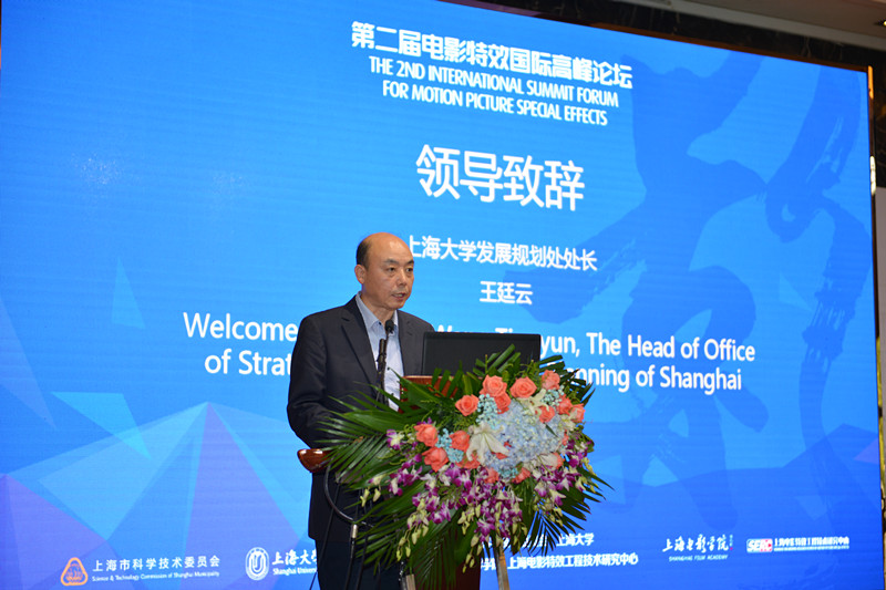 由上海市科学技术委员会、上海大学主办,上海电影学院、上海电影特效工程技术研究中心承办的2017第二届电影特效国际高峰论坛,于10月27日在上海衡山北郊宾馆顺利开展。上海市科委总工程师傅国庆,上海市广播影视制作行业协会副会长兼秘书长于志庆,上海大学发展规划处处长王廷云,上海大学招毕办主任叶红,上海大学高等研究院副院长钱光人,上海大学国际事务处副处长倪兰等领导,美国Pixar动画公司、北京棒棒时空文化创意有限公司、Base FX、More VFX、韩国4th creative party公司、北京天工异彩影视科技有限公司、深圳楷魔视觉工厂数字科技有限公司、上海诺奕腾科技有限公司、壹星国际文化公司等影视特效领域知名业界专家,以及上海大学上海电影学院、上海电影特效工程技术研究中心师生共一百五十多位中外嘉宾出席论坛。