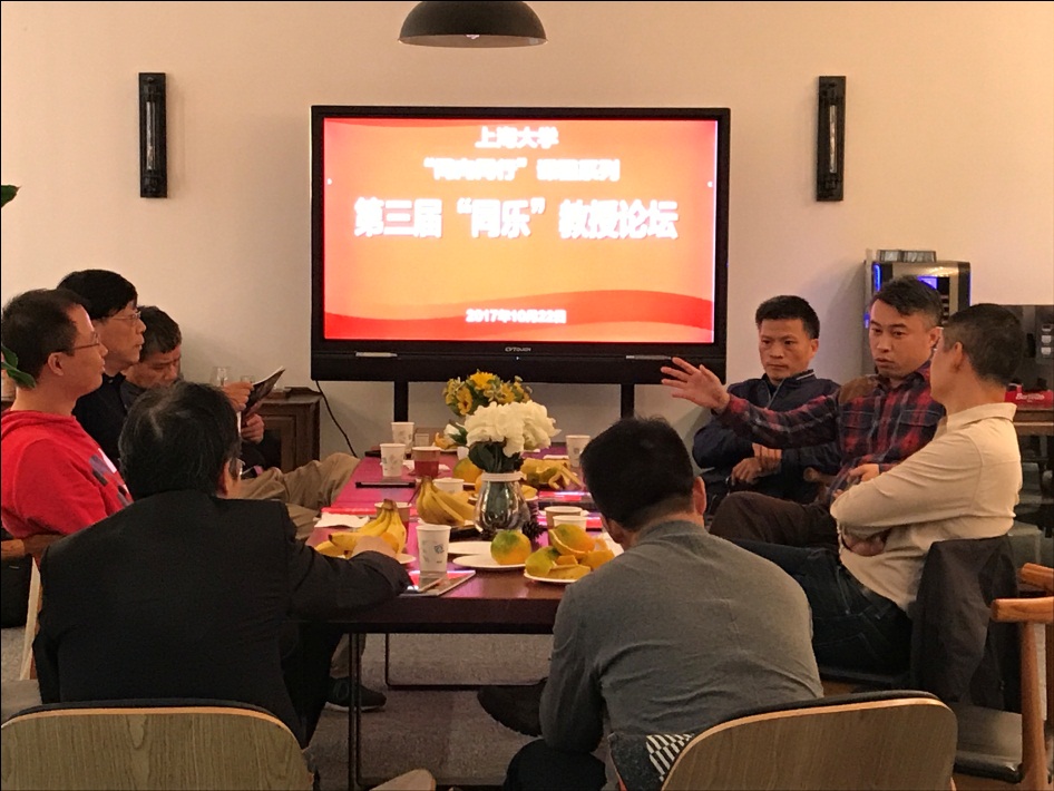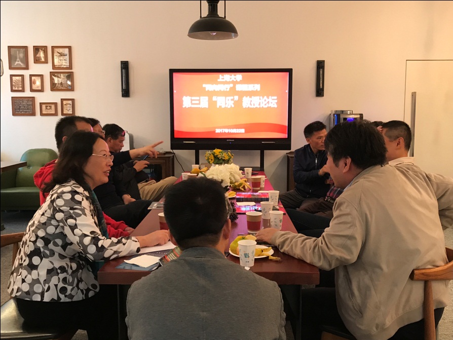 近日,“大国方略”系列课程之第三期“同乐”教授论坛举办。社会学院教授顾骏,通信学院教授、万人计划专家王国中,通信学院教授、国家杰青张新鹏,钱伟长学院教授、东方学者姜颖,理学院教授、东方学者陈玺,期刊社编审方守狮,上海政法学院教授、国际政治研究专家王蔚,无人艇研究院副研究员、青年东方学者杨扬,无人艇团队青年教师姚骏峰和上海高校思政课名师工作室“顾晓英工作室”主持人顾晓英等出席。教授们小聚出版社咖吧,回顾“五朵金花”齐开放的历经,畅谈如何学习贯彻党的十九大精神,汇聚我校多学科人才资源, 设计、培育并打造好更多开启学生创新思维又能密切对接国家战略需求的优秀课程。