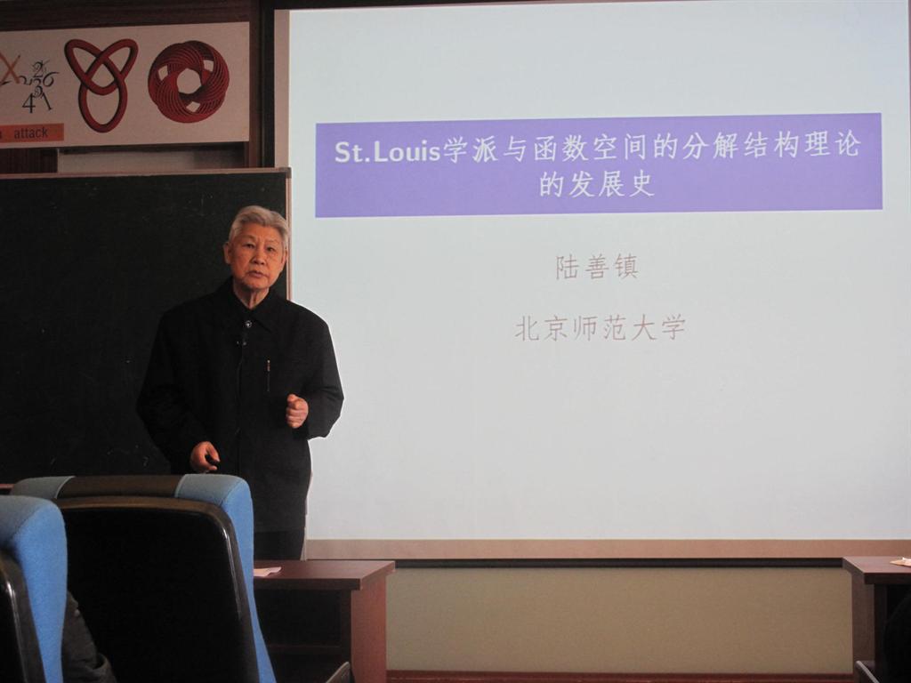 10月31日上午,北京师范大学校务委员会副主任,原北京师范大学校长陆善镇教授在理学院数学系报告厅作了题为“St. Louis学派与函数空间分解结构理论的发展史”的学术报告。本次报告由理学院数学系系主任王卿文教授主持,系师生90余人参加。