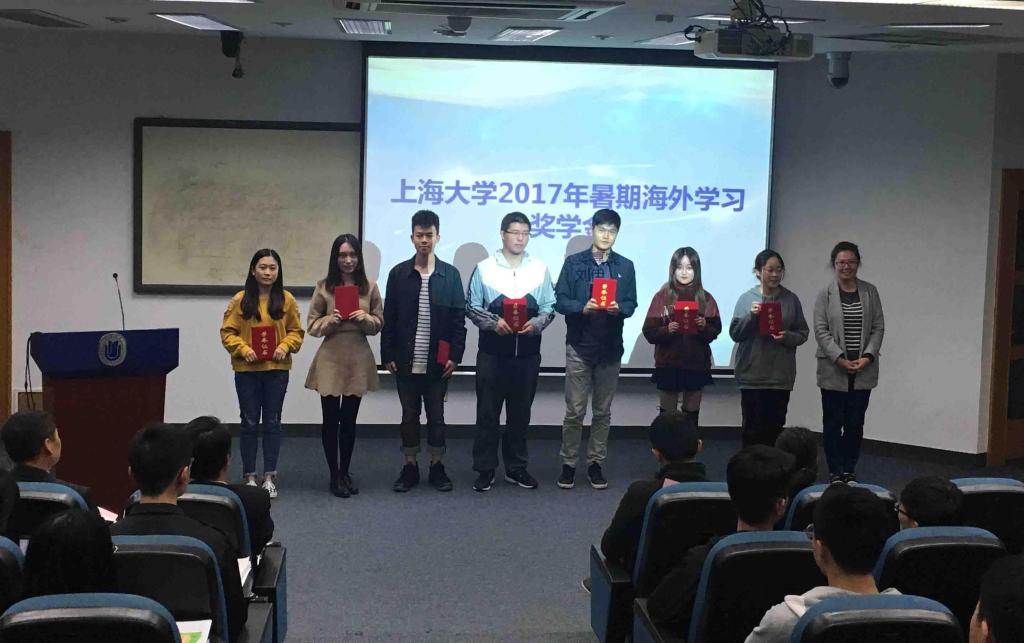 10月31日下午,上海大学2017寒暑假海外学习奖学金颁奖典礼暨2018项目推介会在宝山校区J楼102成功举行。国际事务处处长万旺根、副处长崔巍、钱伟长学院副院长姜颖、党委副书记韦淑珍以及合作方代表等出席。