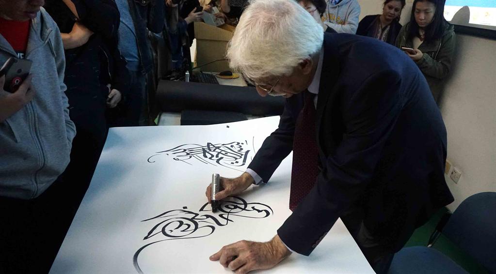 开幕式期间,巴基斯坦COMSATS美术馆馆长Farrah Mahmood女士介绍了巴基斯坦传统微型绘画艺术的历史与技术,巴基斯坦COMSTS美术馆的高级书法家Rasheed Butt先生和Nasir Khan Seemab先生现场作书法,表示希望中国与巴基斯坦之间的友谊长存,参加书法研讨会的老师和同学们与两位书法家围绕书法的内容和含义进行了互动交流。