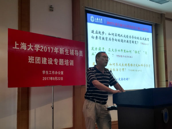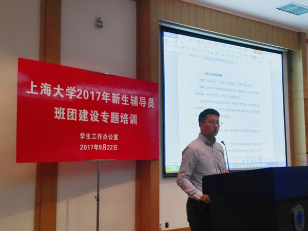 为了进一步加强新生辅导员对于校训精神和使命愿景的了解,提升辅导员依据教育部最新法规开展工作的能力,加强新生辅导员关于活动课组织、卓越班级创建、魅力班级和团支部建设等主题的工作意识与能力,9月22日,上海大学2017年新生辅导员班团建设专题培训在J201顺利举行,来自16个院系50余名带2017级本科新生的辅导员参加了培训会。