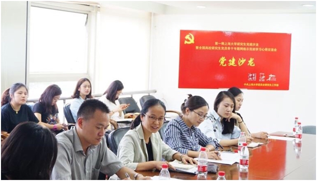 9月22日,上海大学第一期研究生党建沙龙暨全国高校研究生骨干专题网络培训示范班总结交流会在宝山校区行政楼403会议室召开。党校常务副校长、组织人事部副部长、教师工作部副部长张洁老师,党委研究生工作部副部长魏宏老师,部分学院研究生辅导员老师,以及各学院研究生党总支副书记共30余人参加了此次沙龙活动。大家围绕“培训示范班的学习体会以及新学期研究生党建工作思考”进行了深入交流探讨。