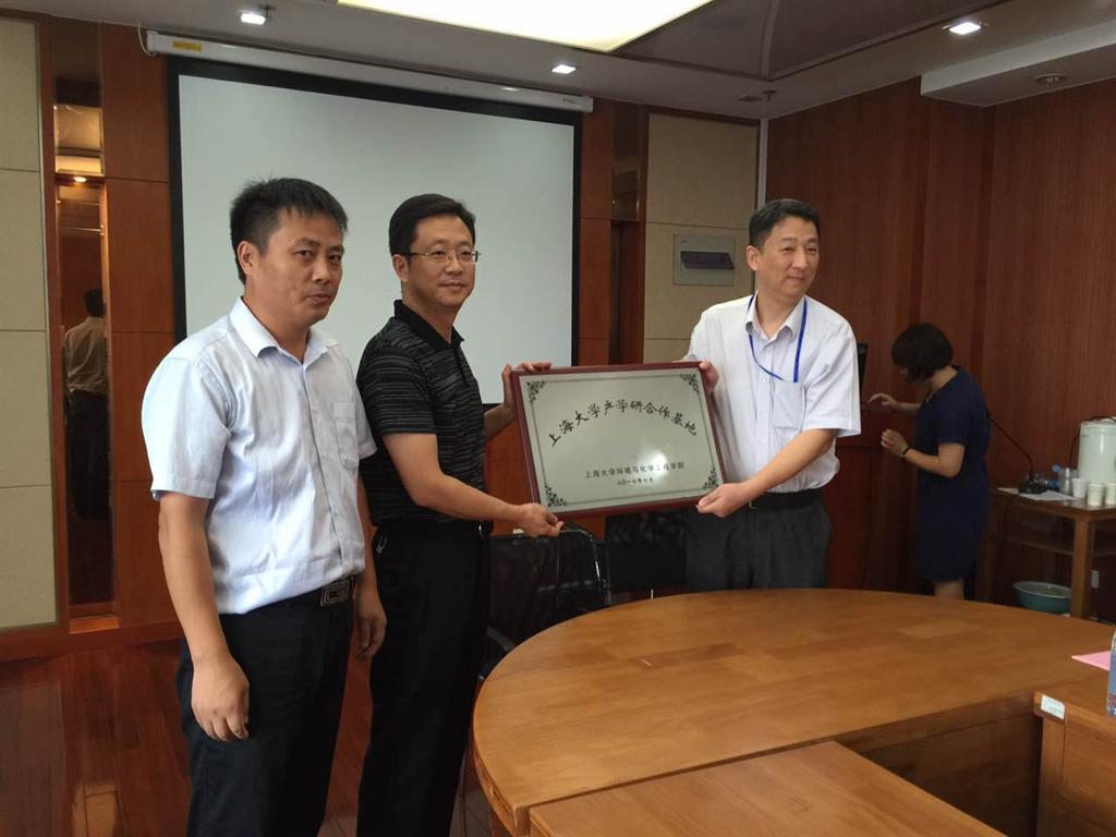 9月15日,上海大学环化学院-河南省兰考县委县政府-上海康铭化工战略合作研讨暨产学研基地揭牌仪式在环化楼915会议室举行。兰考县县委田风副书记、黄宗刚副县长,环化学院张勇院长、王勇副院长、王宇华副书记以及上海康铭有限公司王二国董事长、陆伟总经理参加了研讨会。会议由王勇副院长主持。