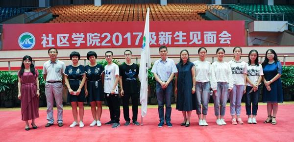 接下来,社区学院导师团队、楼宇中心辅导员团队、社区管理部管理员团队以及导生团队部分代表,一一登场并与2017级新生集体见面,送上了衷心的祝愿和寄语,希望2017级新生在大学四年不忘初心,砥砺前行,践行校训精神,实现自己的梦想。