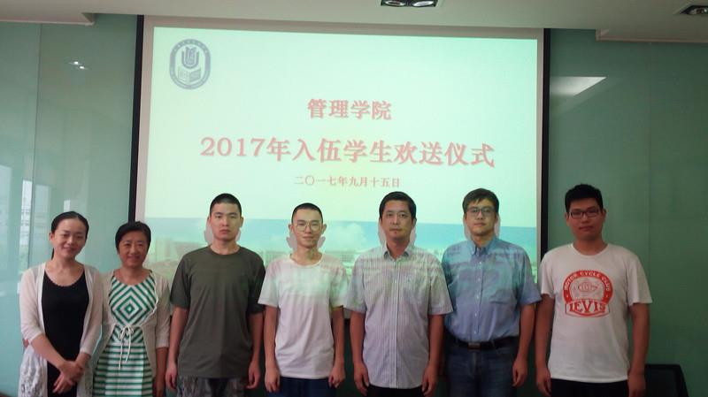 9月15日,管理学院召开了2017年本科男兵入伍欢送会。学院党委书记李伟、副书记朱宏涛以及学院辅导员出席了此次会议。
