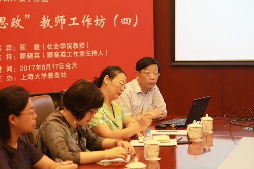活动由上海大学教务处副处长、上海市思政课名师工作室“顾晓英工作室”主持人——顾晓英老师主持。校党委副书记、副校长龚思怡和教务处处长彭章友与会指导。
