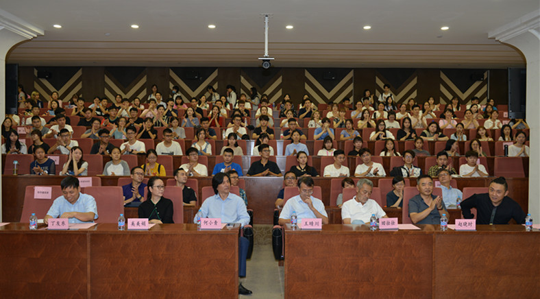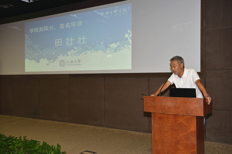 随后学院副院长、首席教授田壮壮,奚美娟,赵晓时分别寄语新生。田壮壮老师一上来用在现场发现的人与人之间的细小区别作为例子引出“从事艺术工作的基础要从观察生活开始”的道理。之后,他又通过分享关于佛祖释迦牟尼的一个故事道出了他对艺术、对艺术教育、对新生的期望。他认为,从某种角度看,修行和艺术是相通的,艺术为什么那么美好,却还是有很多人搞不了?释迦摩尼曾在回答徒弟的问题时说:佛有四件事做不到,因果不能改,真法不可说、智慧不可赐、无缘不可渡。由此,他强调,首先,教和学是客观和主观两个方面,教师肯定会竭尽所能教育学生,但最终能否改变学生,关键还在于你自己;其次,智慧是无法赐予的,只有靠你自己努力、觉悟才能获得智慧;第三,艺术要靠灵感、激情和积累,从古至今没有“法”规定艺术是怎么样的;最后,在每一位新生面前还隔着一条大河,学院好比是一艘船,只有用自己的心去学才能在四年后到达艺术的彼岸。