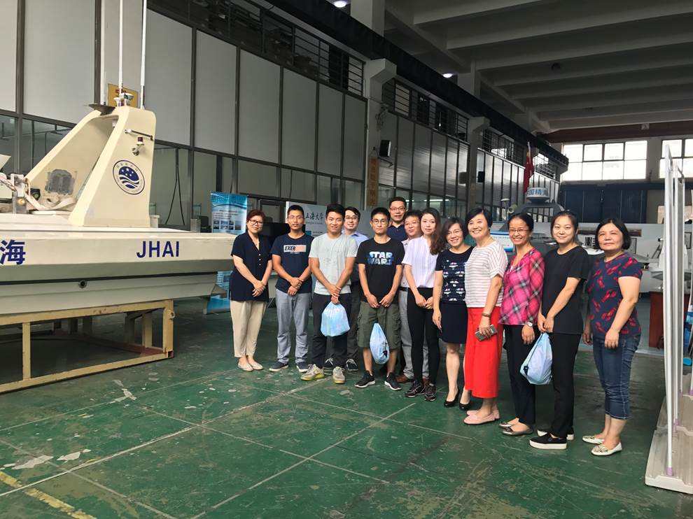 随后,一行人来到上海大学无人艇工程研究院。无人艇团队的负责人罗均教授、谢少荣教授正在现场指导团队成员开展技术攻关,正是由于团队“精卫填海”般的精神,近年来“无人艇”团队获得了累累硕果,包括南极以及我国南海、东海等复杂海域的测量和科考任务,均由这支团队研发的“精海”系列无人艇包揽。无人艇的成功不是偶然,而是团队成员们争分夺秒、日夜研发所得到的回报,成功不仅仅是团队的荣誉,也代表了学校整体科研水平的提升。