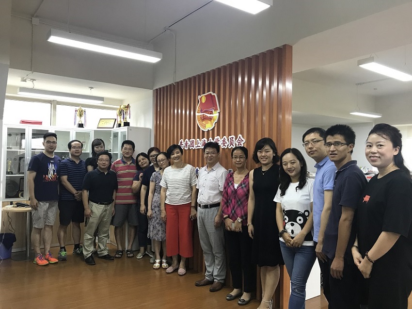大家先来到团委,看望为2017年第十五届“挑战杯”忙碌的如火如荼的年轻团队。上海大学作为第十五届“挑战杯”的承办单位,力争在以往历届赛事的基础上,结合上海特色和上海大学育人理念,将本届“挑战杯”竞赛打造的更加精彩难忘。王军华同志代表学校对校团委老师的辛苦付出表示衷心感谢,同时也嘱咐各位老师在繁忙的工作中保重身体,注意防暑降温。