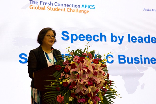 上海大学悉尼工商学院副院长胡笑寒作开幕式致辞,她首先对全国各兄弟高校以及亚太赛区众多外国高校参赛团队的到来表示热烈欢迎。她说,学术无国界,上海大学悉尼工商学院是本届大赛的承办方,学院非常高兴借主办本次大赛的机缘,与志同道合的四方宾客一起互相砥砺、共同切磋,促进国际学术交流,提升学生专业实践能力,预祝2017年TFC全球比赛亚太区决赛取得圆满成功!她表示,学院一贯致力于国际化、应用型商科专业人才培养,工商管理系高峻峻教授三年前把这款供应链游戏引入课堂,使学生得以在全球化商业模拟环境中得到学以致用的培养和锻炼,上大悉商代表队荣获2016 APICS TFC亚太区供应链挑战赛冠军。她祝愿每支参赛队发挥实力,赛出水平!