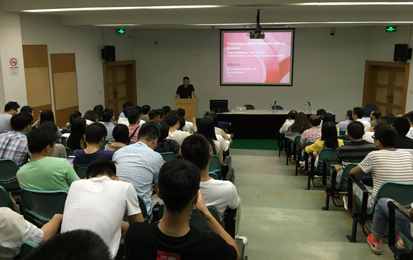 7月7日上午,Wiley期刊副主编徐广臣博士应邀为我校师生作了题为“如何在Wiley的材料科学发表论文”的学术报告。徐广臣博士现为Wiley出版社期刊Small、Small Methods、Advanced Energy Materials和Advanced Science的副主编。上海大学环化学院副院长王勇教授、副院长陈志文教授以及相关研究方向的教师和研究生参加了此次报告会。