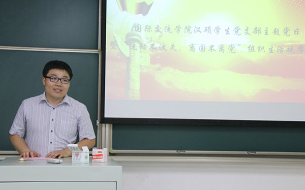 为进一步推进“两学一做”学习教育常态化、制度化,深入学习习近平总书记系列讲话精神,加强基层党支部建设,让党员无论身处何地,都能不忘初心,始终发挥先锋模范作用,国际交流学院汉硕学生党支部于7月7日下午在校本部D208举办了“流动不流失,离国不离党”主题党日暨组织生活观摩活动。上海大学党委组织部于伟,国际交流学院党委书记王海燕,国际交流学院留学生事务办主任黄自然出席此次活动。国际交流学院教师党支部、行政党支部和学生党支部的党员们均到现场观摩学习。