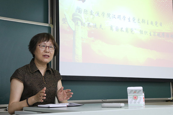 本次汉硕学生党支部主题党日暨组织生活观摩活动是本年度国际交流学院党建课题的重要组成部分,旨在深入推进“两学一做”学习教育常态化、制度化,抓实基层党支部建设,真正发挥党员的先锋模范作用。希望通过本次活动,能够增强我院学生党员特别是即将赴海外孔院的志愿者党员的党性修养和综合素质,把学生党员的思想政治工作同汉语国际教育专业的教育教学紧密结合,不断探索我院汉语国际教育硕士的全员、全程、全方位育人之道。