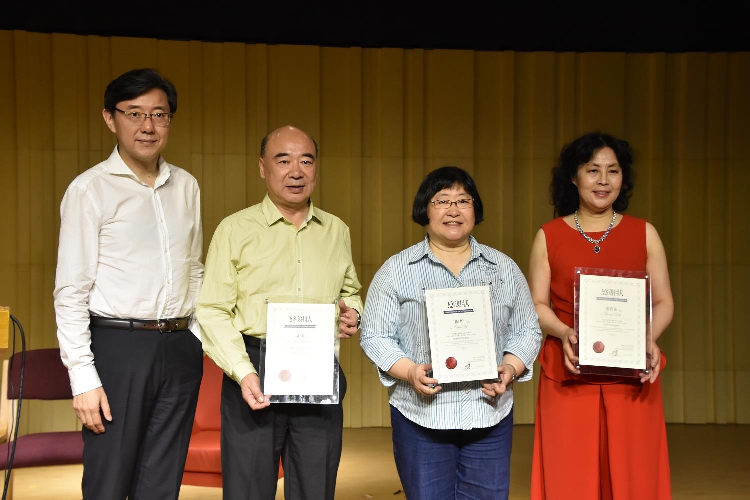 讲座最后音乐学院院长王勇教授为三位教授颁发感谢状,期待三位教授能够再次光临音乐学院并带来更加精彩的讲座。(朱奕秋、王玥蓉供稿)