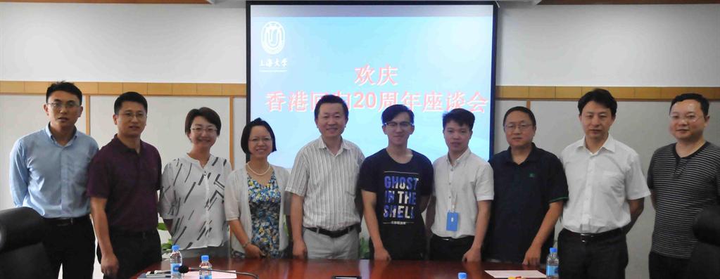 为庆祝香港回归20周年, 6月30日上午, 我校在行政楼203会议室举办了“庆祝香港回归20周年”座谈会。校党委统战部部长曹为民、副部长李青,人事处副处长王建军、港澳台事务办公室副主任崔巍、学工办副主任王国建以及上海大学香港籍师生代表参加了此次座谈会。座谈会由港澳台事务办公室副主任崔巍主持。