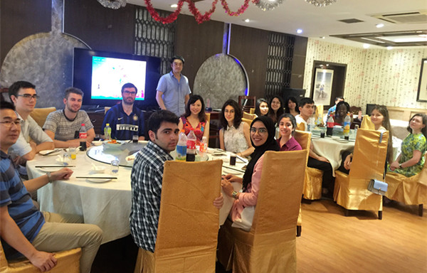 6月30日,由上海大学国际交流学院主办的2017年孔子学院奖学金生毕业欢送会在宋园茶艺馆举行,上海大学国际交流学院孔子学院办公室副主任黄如祺老师、上海大学国际交流学院汉语培训教研室主任李文韬老师和来自11个国家的17名孔子学院奖学金生欢聚一堂,共同庆祝毕业。