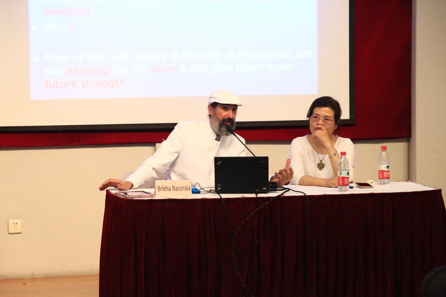 Brikha H. S. Nasoraia教授引导师生以辩证的思维透过问题的表象看本质。如何看待“全球化”所带来的各种变化?是和谐相处,还是加剧各种冲突?谁能够从“全球化”中受益呢?中东人总是把矛头指向美国或者与美国结盟的以色列,认为他们是这些冲突的始作俑者。反美情绪在阿拉伯穆斯林中间特别严重。要想了解中东的冲突原因,很好地分析、解决问题,就必须找到这些反美现象的根源。他认为,中东一些国家的民众思维还停留在民族主义的层面上,远没有提升到全球化的高度。如果中东这些国家能够提升他们的民众意识,合理地改善教育,那么中东冲突的问题就能够得到很好的解决。最后,Nasoraia教授提出,在全球化的进程中,各个地方、各个国家应该互利互助,共同进步,才能建立人类的美好家园。
