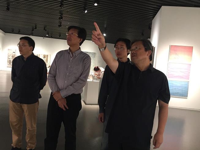 研究生优毕展正式对外开放首日,上海美术学院院长冯远和刘海粟美术馆馆长朱刚亲自莅临观展指导,并对研究生教育的提出具体要求,“研究生的毕业作品在有自选题的同时,还要有展现同学们真正实力的必选题,创意创新很重要,同时,希望同学们可以画出更多触碰人们心灵,可以感动观者的作品!”