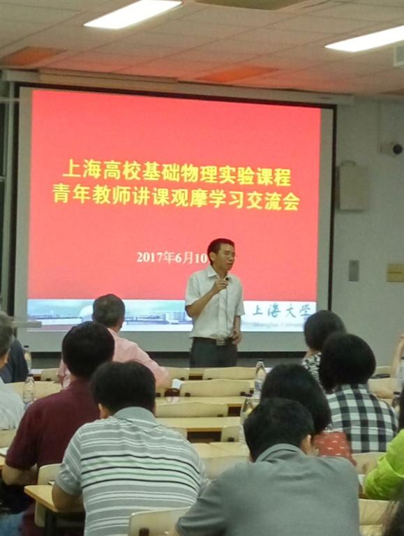 为进一步激发和鼓励青年教师投身物理基础教学、提升教学水平、交流教学经验,由上海市物理学会高等学校物理教学委员会和上海高校基础物理实验教学指导委员会主办,上海大学理学院物理系、上海大学物理实验中心承办的“上海高校基础物理实验课程青年教师讲课观摩学习交流会”于6月10在在我校FJ104隆重举行。上海地区13所高校80余名代表参加了会议,上海市物理学会副理事长、复旦大学原副校长陆昉教授、教育部高等学校大学物理课程教学指导委员会秘书长王祖源教授、物理学会常务副秘书长庞乾骏教授出席了会议。会议由物理系总支书记张义邴主持,理学院副院长陈玺教授代表学校学院致欢迎词,中国高等学校实验物理教学研究会副理事长、青年教师讲课比赛(上海赛区)负责人马世红教授介绍了实验讲课比赛的要求和上海赛区比赛情况,随后进入实验课程青年教师讲课比赛模拟示范、观摩学习流程。