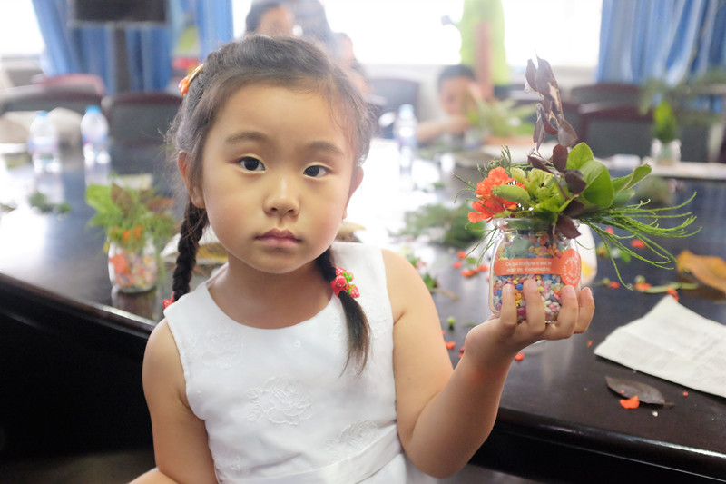 最后,家长和孩子们进行了花艺体验活动,大家发挥创意,选用圆柏、石榴花、鸡爪槭等植物,将采集的落花落叶等花材集中在一个小小的插花瓶中,并对其有了一定的了解。另一项关于报纸的小游戏则提醒大家保护我们共同的生态环境的重要性,以及团结合作对于一个团队的影响,小朋友们也学会了报纸的废物利用——自制报纸纸袋。