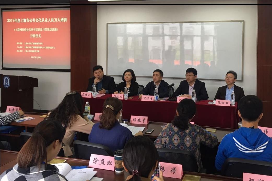 5月9日上午,由上海市文化广播影视局干部培训与交流中心主办,继续教育学院承办的上海市公共文化从业人员万人培训首期培训班“互联网时代公共图书馆建设与管理培训班”在我校新闸路校区举行了开班仪式。上海大学副校长欧阳华、市文广影视局党委副书记沈卫星、上海大学继续教育学院常务副院长陈方泉、市文广影视局干部培训与交流中心主任杨瑞娴等领导与来自上海市公共图书馆系统的47名学员参加了开班仪式。市文广影视局干部培训与交流中心副主任吴鹏宏主持了开班仪式。