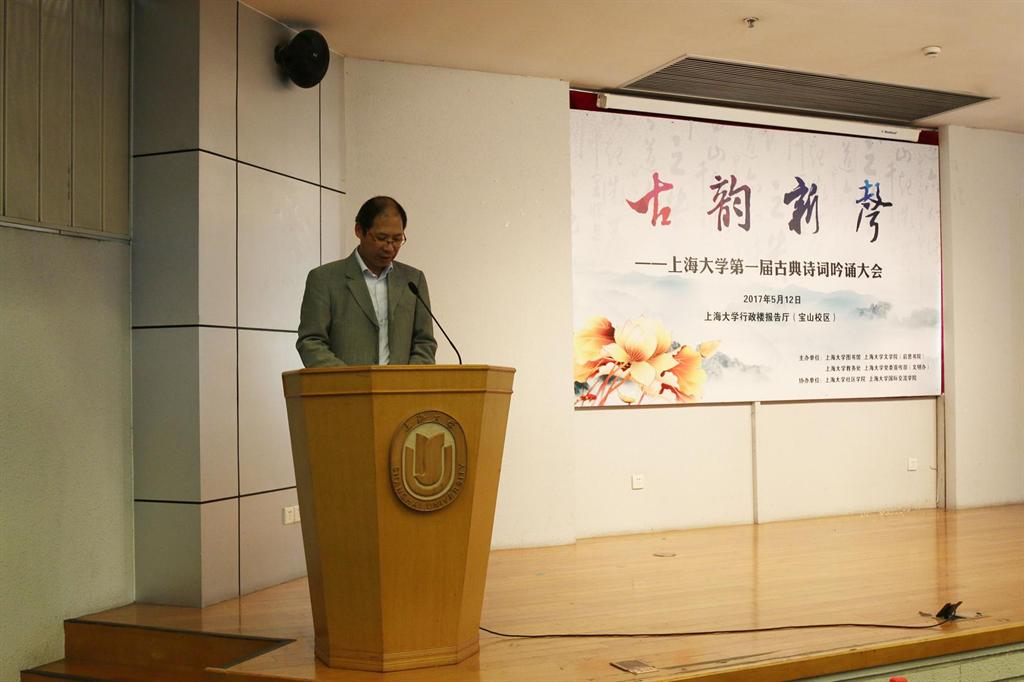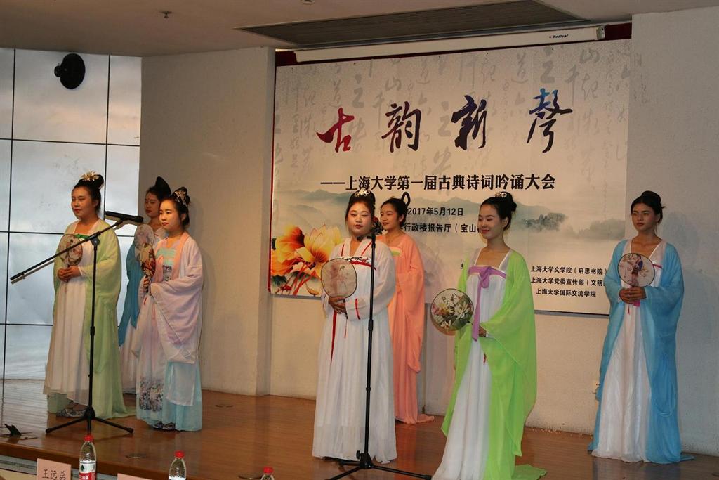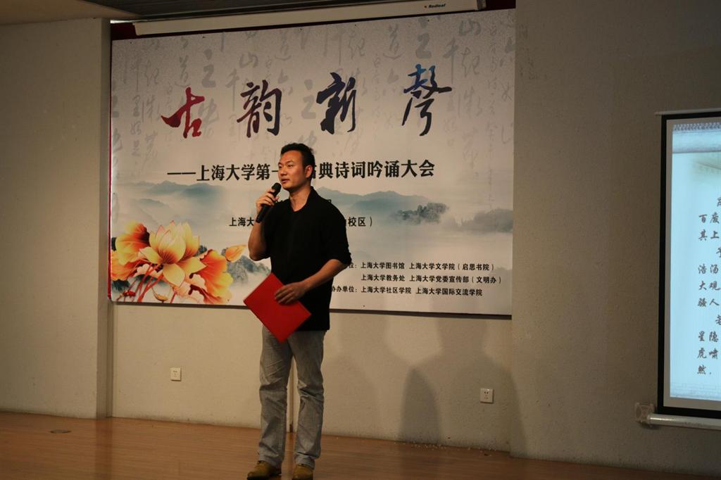 为推动中华优秀传统文化的传承发展,发掘中国古典诗词蕴含的人格操守与家国情怀,进而阐扬校训精神,繁荣校园文化。5月12日下午,由上海大学图书馆发起的“古韵新声—上海大学第一届古典诗词吟诵大会”,在宝山校区行政楼报告厅隆重举行。