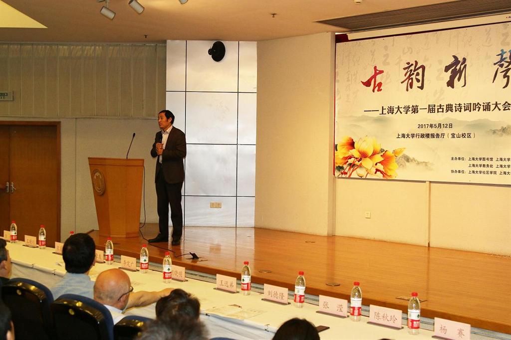活动现场,各位特邀嘉宾分别以吟诵、吟唱、朗诵等不同方式,精彩展示了的诗词作品魅力,并对节目进行评点,同时还就古典诗词的声音表现艺术,以及当下古典诗词的活动热潮等,发表了独到的看法。与会专家对我校举办的第一届古典诗词吟诵大会表示充分肯定。李定广教授认为举办古典诗词吟诵活动在上海地区的高校中尚属首次,必将对此类文学活动的开展起到引领作用。胡晓明教授对图书馆与文学院发挥各自所长、联合举办文化活动的创新模式,也给予了高度评价。