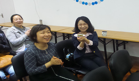 最后,大家齐唱生日快乐歌,为三四月份过生日的教职工庆祝了生日,并分享了甜蜜的蛋糕。