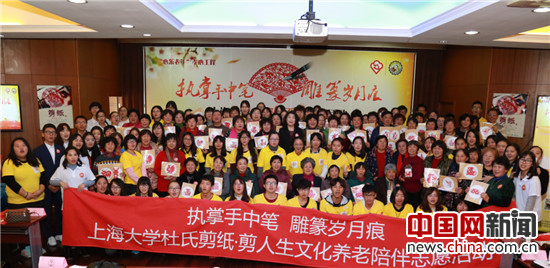 2016年是“青春伴夕阳·全国高校陪伴实践大赛”举办的第一年。在高校团委、心系系列活动项目办公室、爱心企业以及几百所高校志愿者的合力推动下,大赛取得了喜人的成绩。大赛评委会共收到了近300所高校志愿者提供的孝老方案,陪伴成果赛更是得到了284万次的投票关注。实践赛活动中,上海大学74名志愿者早晨6:00便从学校驱车赶往青浦区赵巷成人学校报告厅,与49位老人一同大手牵小手,完成一幅又一幅的剪纸作品。据悉,志愿者们得到了海派剪纸之颛桥剪纸艺术第一传承人杜伟秋老师的指点,特别为该次活动设计了十二生肖和最具青浦特色的船文化“摇快船”剪纸模板。其中,全新原创剪纸模具十二生肖,将传统元素与现代元素相融合,更美观、更统一。活动过程中,同学们采用一对一模式陪伴老人。在志愿者的细心协助下,爷爷奶奶们刻得认真、剪得仔细。老花镜下,老人专注的眼神仿佛传递着这样的信息:这一刀一刻是在进行艺术创作,亦是在雕琢宝贵的人生。